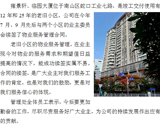 雍景軒、臨園大廈成功續(xù)簽物業(yè)服務(wù)管理合同