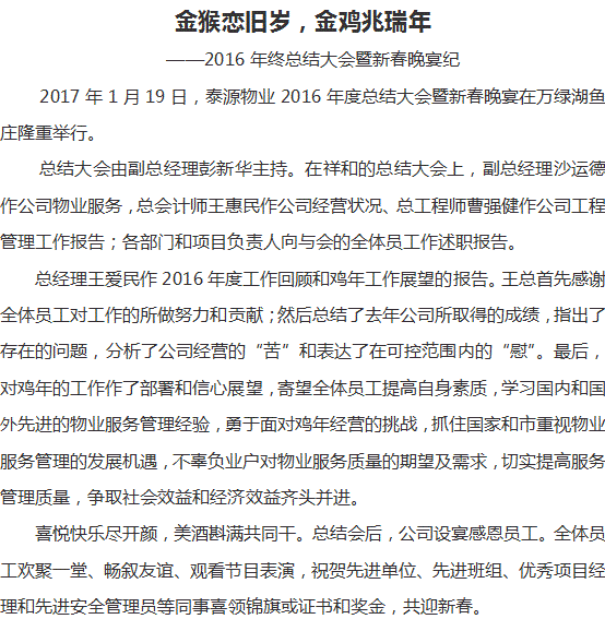 總經(jīng)理作2016年度工作總結(jié)暨雞年工作展望