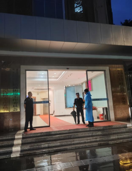 天亮早起的業(yè)戶,看到保安仍在清理樹枝,沖洗地面,豎起拇指對他們說:“你們辛苦了,好樣的!”